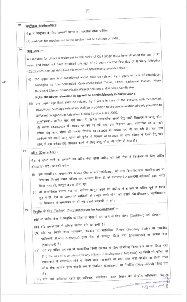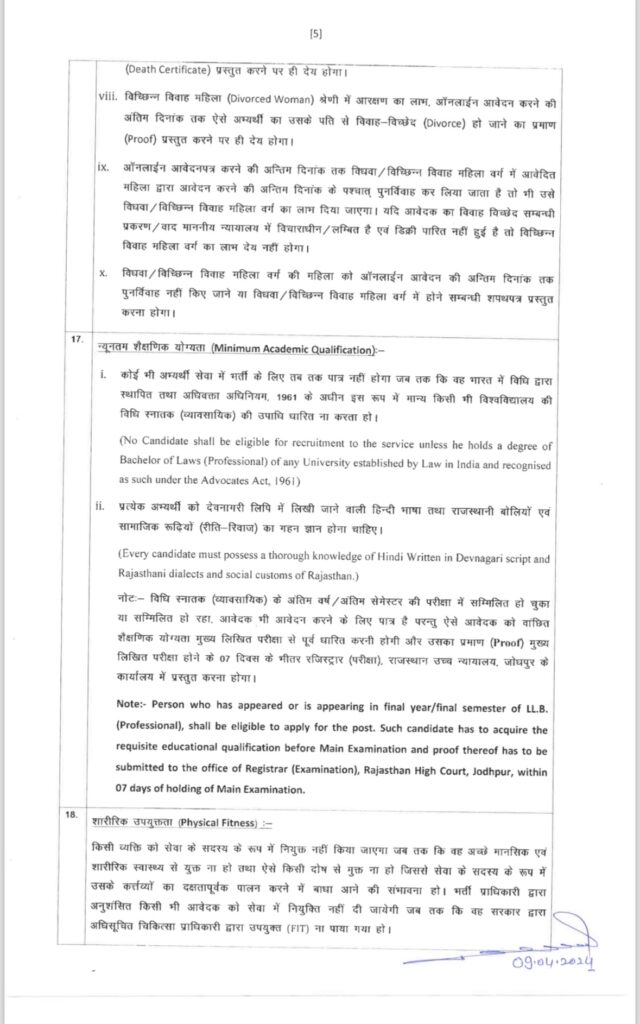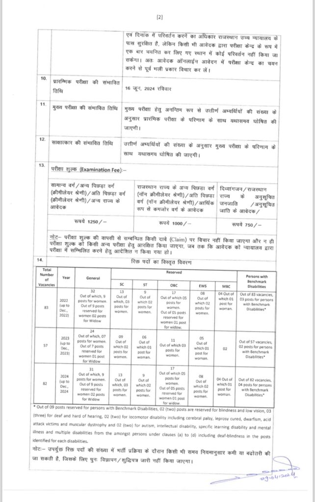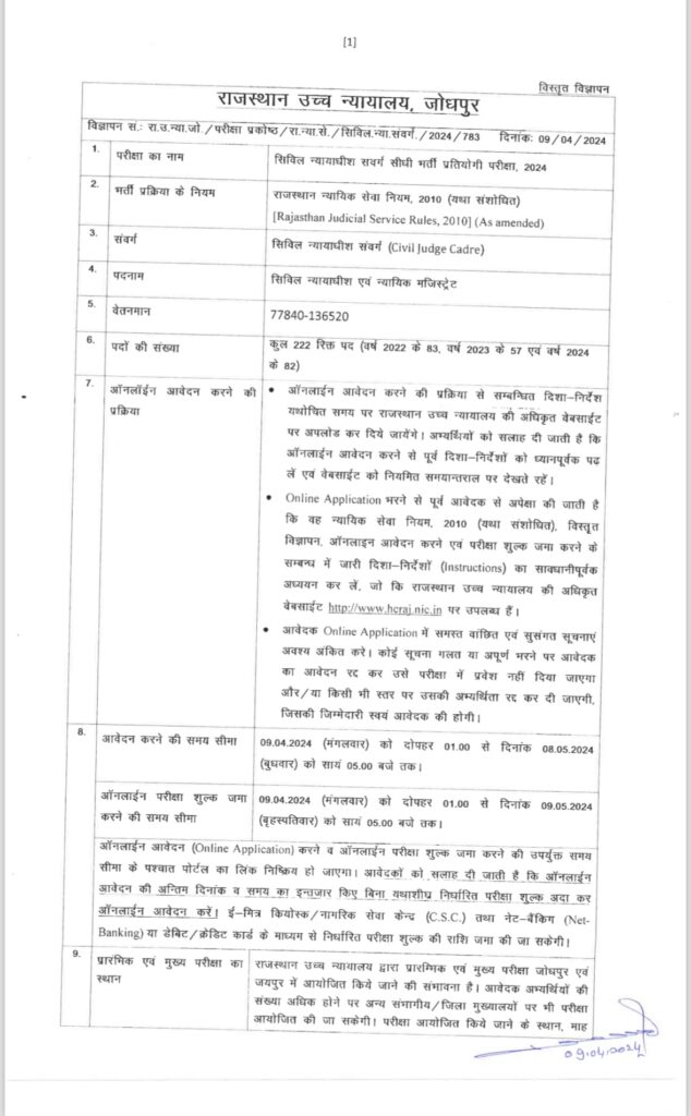 राजस्थान उच्च न्यायालय द्वारा जारी विज्ञापन के अनुसार कुल 222 सिविल जज की भर्ती की जानी है योग्य उम्मीदवारो से आवेदन आमंत्रित किए है पूरी जानकारी देखे